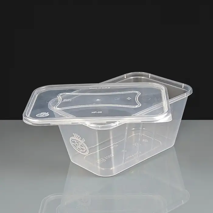 A microwave safe plastic container with lid made from clear polypropylene. Rectangular in shape (163 x 110 x 80mm) with an approx 1015cc/ml capacity, ideal for take aways.Great for a portion of rice, chow mein, salads etc