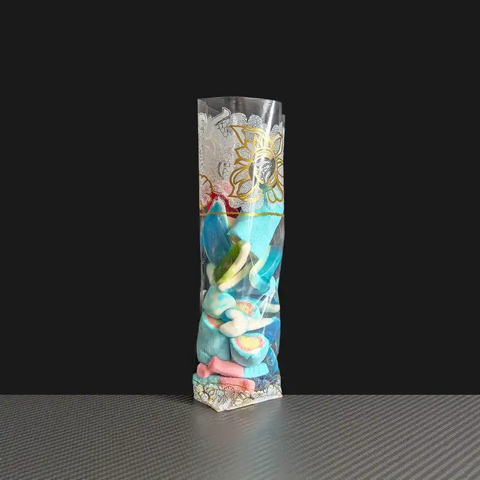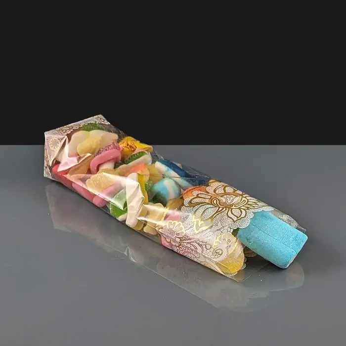 Home > Food Packaging > Paper Bags > Printed Block Bottom Bags > 100mm x 220mm DENTELLE FLEURS Block Bottom Bags - Card Base