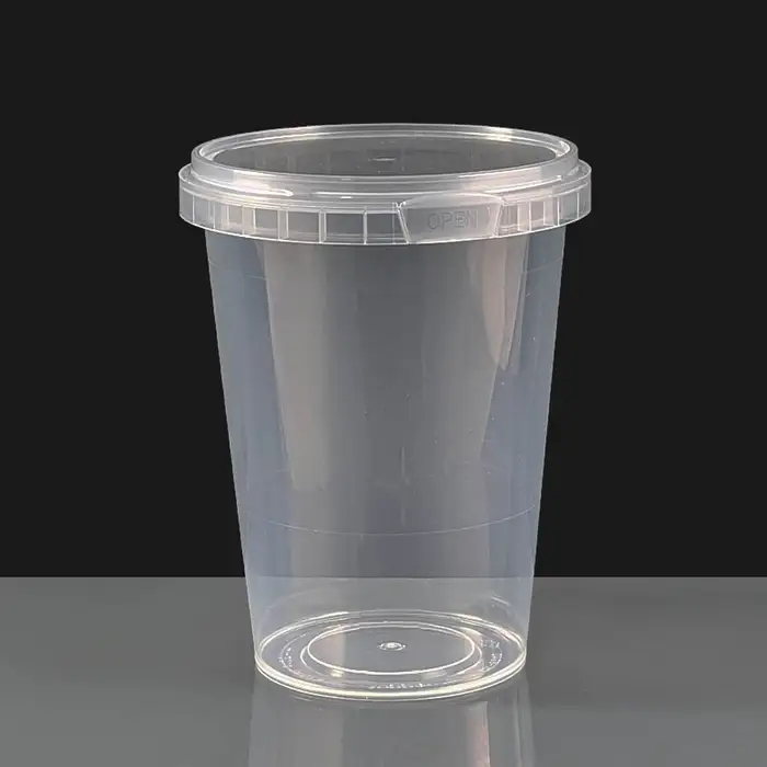 670ml Clear 105mm diameter round tamper evident / tamperproof food container with lid. Freezer, microwave and dishwasher safe. Uses: This is one of our most popular sized containers, as it is big enough to take a double serving of soup.