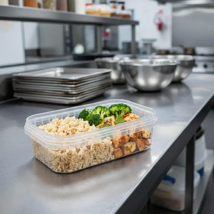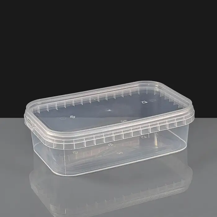 Home > Food Packaging > Manufacturer Food Packaging > Tamper Evident Containers > 750ml Clear Rectangular Tamperproof Container and Lid