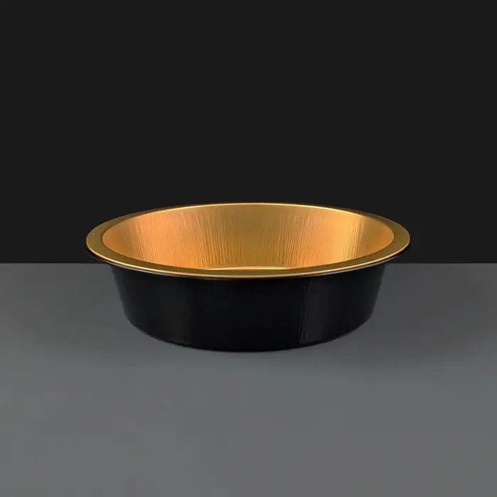 Take your food to the next level with these premium i2r aluminium foil plain black external and gold internal finish smoothwall containers that are great for hot or cold foods, for re-heating in an oven or air fyer. The dimensions are :