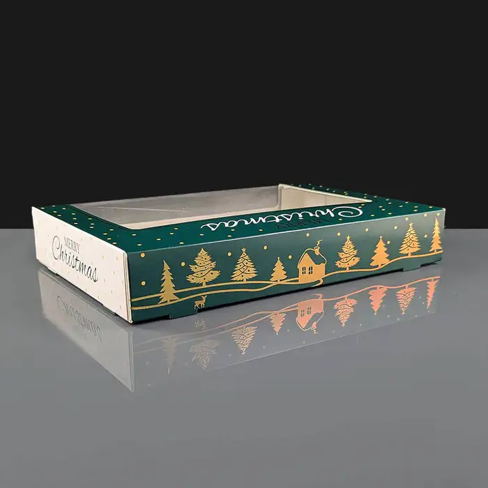 Home > Christmas > Mince Pie Packaging > Premium Green Christmas Flat Mince Pie Box 10x6.5x1.5