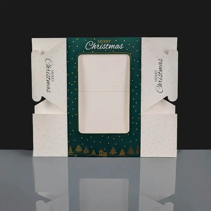 Home > Christmas > Christmas Cake Boxes Wholesale > Premium Windowed Green Christmas Cake Boxes 8x8x5