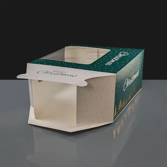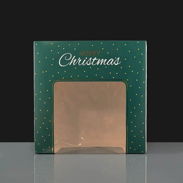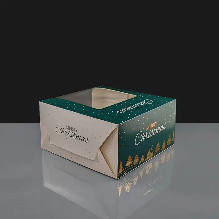Home > Christmas > Christmas Cake Boxes Wholesale > Premium Windowed Green Christmas Cake Boxes 6x6x4