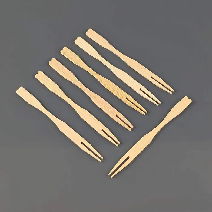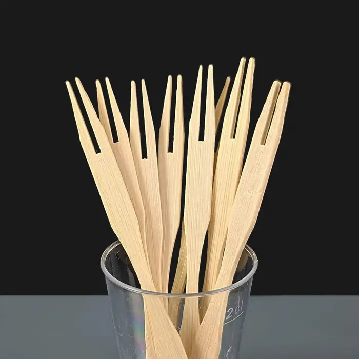 A pack of 100 or a case of 1000 90mm (3.5 inches) bamboo buffet forks ideal for take away food such as sushi, buffet food or more substantial canapés. FSC approved, compostable Buffet Forks are environmentally friendly and easy to recycle after use.